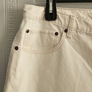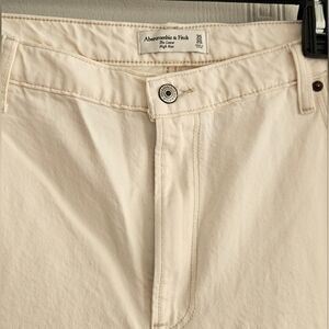 New with tags discontinued Abercrombie ecru/winter white/cream wide leg high rise denim with beige contrast stitching. 5 pocket design, stretch.