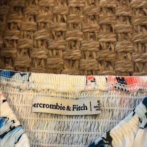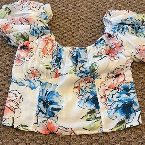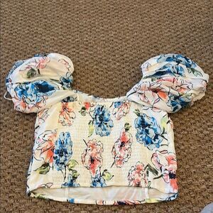 Abercrombie & Fitch Cream and Blue Puff Sleeve Crop Blouse