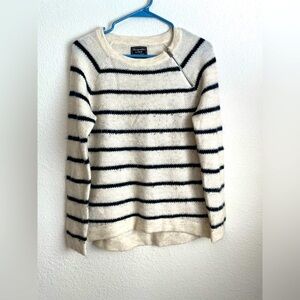 Abercrombie & Fitch Cream and Blue Striped Crew Neck Sweater size S