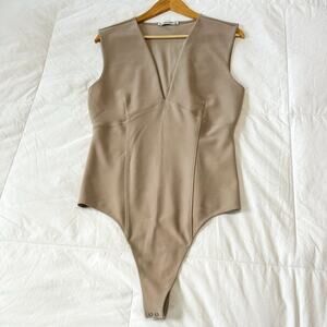 Abercrombie & Fitch Crepe Plunge V-Neck Bodysuit Taupe Tan Sleeveless Size XL