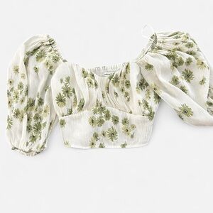 Abercrombie & Fitch Crinkle Smocked Puff Sleeve Top Sweetheart Neckline Size L