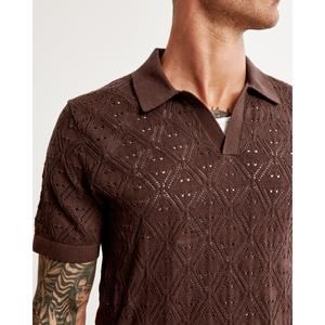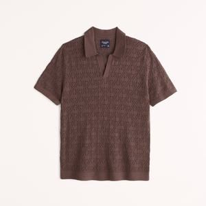 Abercrombie Fitch Crochet Johnny Collar Sweater Polo - M - Dark Brown