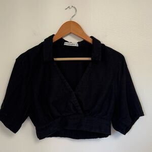 Abercrombie & Fitch Crop Wrap Collared Linen Top in Black
