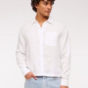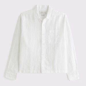 Abercrombie & Fitch Cropped Linen Button-Up Shirt Size M