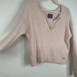 Abercrombie & Fitch Cropped V Neck Slouchy Textured Long Sleeve Sweater