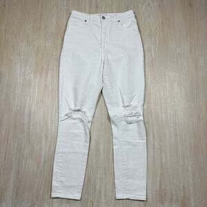 Abercrombie & Fitch Curve High Rise Super Skinny Ankle White Distressed Jeans 27