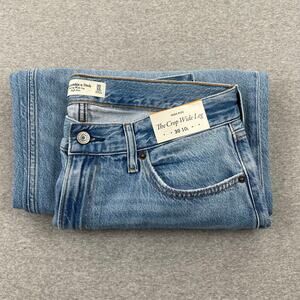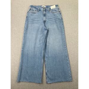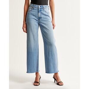 Abercrombie & Fitch Curve Love Cropped Wide Leg Jeans 30 / 10L Long Blue Raw Hem