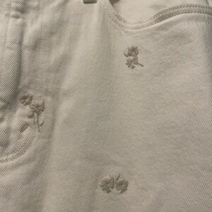 Abercrombie & Fitch Curve Love High Rise 90s Relaxed Jean white with tan embroidered flowers