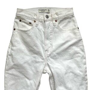 Abercrombie & Fitch Curve Love Ultra High Rise Ankle Straight Denim Jeans Size 23 or 000 in Cream White Destroy