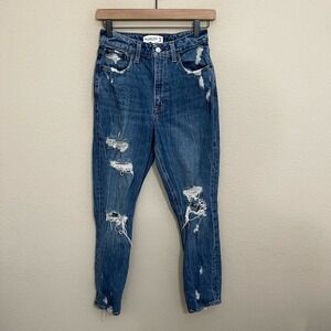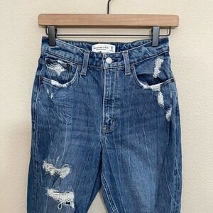 Abercrombie & Fitch Curve Love High Rise Distressed Mom Jeans Medium Wash 25 / 0