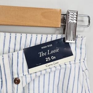 Abercrombie & Fitch Curve Love High Rise Loose Jean Indigo Stripes Size 25 NWT