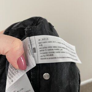 Features: zip fly with button closure, front and back pockets, intentional distressing, high rise, cut off hem, cotton blend