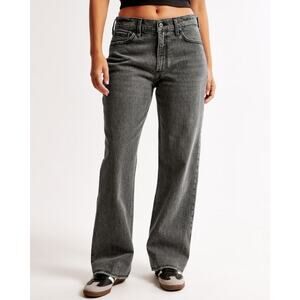 Abercrombie & Fitch Curve Love Low Rise Baggy Jeans Womens 37 Gray Black Slouchy