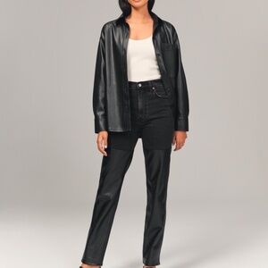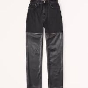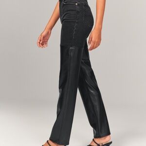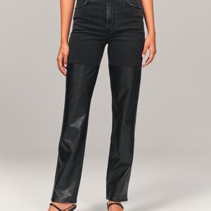 Abercrombie & Fitch Curve Love Mixed Fabric Ultra High Rise 90s Straight Jeans Black Sz 28
