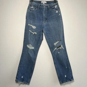 Abercrombie & Fitch Curve Love Mom High Rise Distressed Jeans 27/ 4 Regular