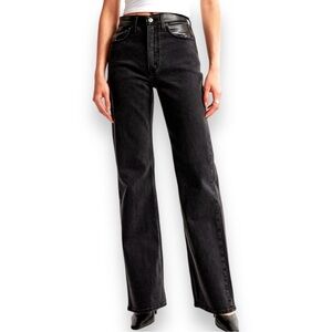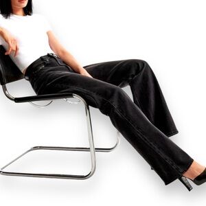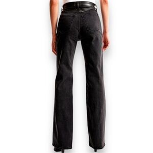 The classic relaxed jeans in a faded black wash, with a vegan leather waistband and a clean hem. This fit is fitted at the waist and hips, and eases at the thigh into a relaxed, full-length leg shape. This jean is made from our vintage stretch fabric which features both an authentic vintage look and contains slight built-in stretch for additional comfort.