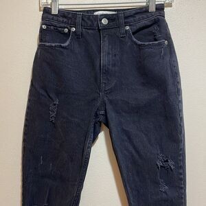Abercrombie & Fitch Curve Love The Mom High Rise Distressed Jeans Black Fray Hem