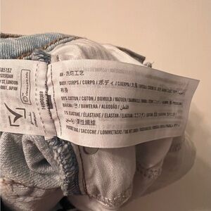 High rise with a relaxed fit throughout the hip and thigh, and a 3 inch inseam. The viral fit that eliminates waist gap: Curve Love features additional room through the hip and thigh for curve-hugging comfort. Vintage stretch denim in a light wash, with distressed details and raw-cut hem. Imported.