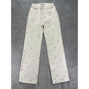 Abercrombie & Fitch Curve Love The'90s Relaxed Jeans Women 24 White Denim Floral