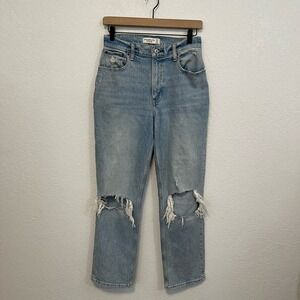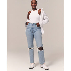 Abercrombie & Fitch Curve Love Ultra High Rise 90s Straight Ripped Denim Jean 26