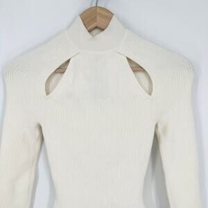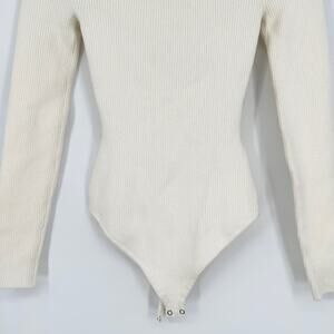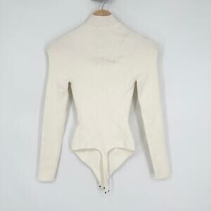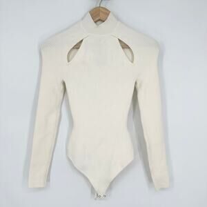 Abercrombie & Fitch Cut-Out Bodysuit Ribbed Knit Mock Neck Long Sleeve Top White