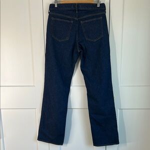 Chic dark blue flare jeans. Perfect for a stylish look.