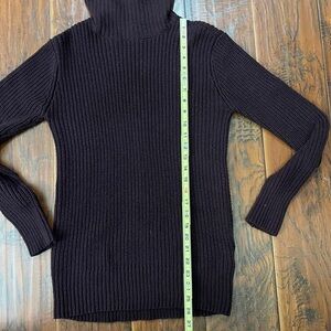 Cozy ribbed knit turtleneck sweater in a rich burgundy color by Abercrombie & Fitch. A classic, fitted style perfect for layering or wearing on its own.