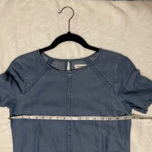 Chic light blue denim mini dress. Soft fabric with short sleeves. Ideal for casual outings. Great condition only worn a few times so bummed doesn’t fit me anymore. Super cute to dress up with boots. No stains or rips