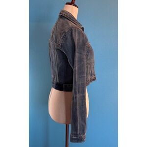Abercrombie & Fitch Denim Jacket Cropped Distressed, Button Close with 1 Button Cuff