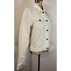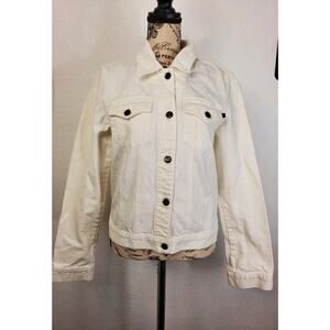 Abercrombie & Fitch Denim Jacket Womens Sz Medium Distressed 100% Cotton White