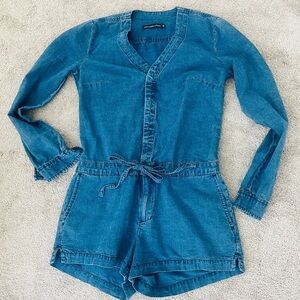 Abercrombie & Fitch Denim Long Sleeves V-Neck Romper