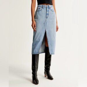 Abercrombie & Fitch Denim Midi Skirt Medium Marble Wash 6T NWT
