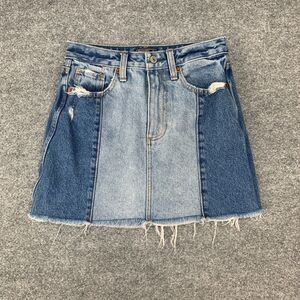 Abercrombie & Fitch Denim Mini Skirt Womens 25/0 Two Tone Raw Hem Distressed