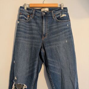 Abercrombie & Fitch Denim Mom Jeans High Rise Distressed Straight Leg Size 10L