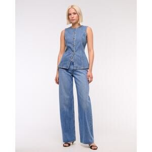 Abercrombie & Fitch Denim Vest Top in Medium Wash Tie Back Size Large NWT New
