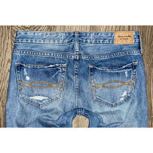 This is a GREAT pair of Abercrombie & Fitch Distressed and Mended/Patched Low Rise Skinny Leg 100% Coton Jeans that have great worn in look with fading and a whiskered look and 2 back pockets!!!! Details as follows: