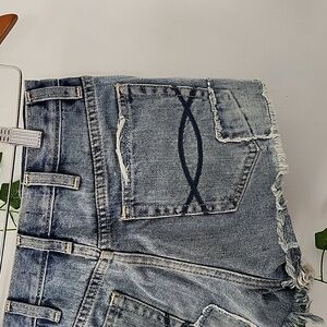 blue denim jeans shorts distressed casual everyday