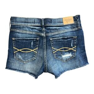 Stylish distressed denim shorts. Ideal for everyday wear. Classic blue color. Preworn denim shorts in excellent used condition.