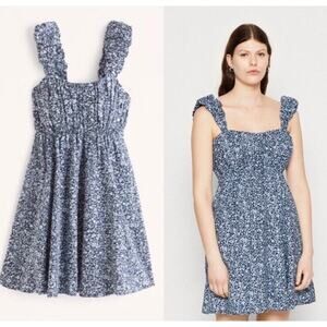 Abercrombie & Fitch Ditzy Floral Puff Strap Baby Doll Dress Blue Size Small Tall
