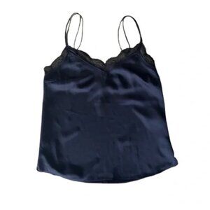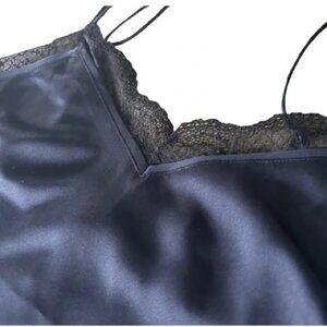 Abercrombie & Fitch Double Strap Lace Trim Satin Camisole in Black
