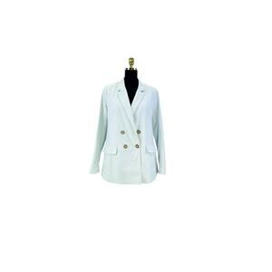 This Abercrombie & Fitch double-breasted blazer brings timeless polish with a modern relaxed fit. Crafted from a breathable linen-cotton blend, it offers lightweight structure perfect for layering year-round. The tailored silhouette, long sleeves, and gold-tone button accents add classic refinement, while the soft blue hue makes it versatile for workwear, events, or casual chic styling. A wardrobe essential for effortless sophistication.