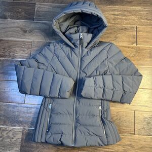 Abercrombie & Fitch Down Hooded Puffer Coat Jacket Grey Full Zip Women’s XS