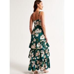 Abercrombie & Fitch Drama Ruffle Tiered Maxi Dress Green Floral