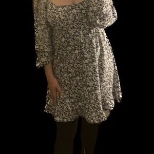 Short, Blue floral dress. In the second picture it comes to right above my knee, I'm 5'0. Ive never worn it, it still has all the tags.