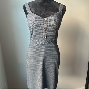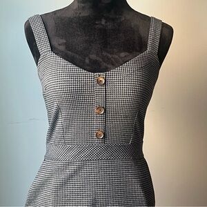 Stylish black and white checkered dress with button details & pockets. Straps are adjustable (see pics).