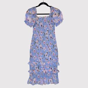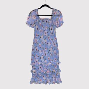 Abercrombie Fitch Dress Purple Smocked Midi Bodycon Floral Ruffle Coquette Small