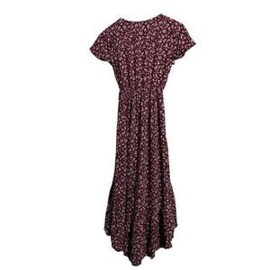 Abercrombie & Fitch Dress Women Burgundy Ruffle High Low Midi Tie Waist XS S