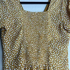 Abercrombie & Fitch Dress Women Size ST Yellow 100% Polyester Deep V-Neck Tall Smoking Pockets Fit & Flare Coquette