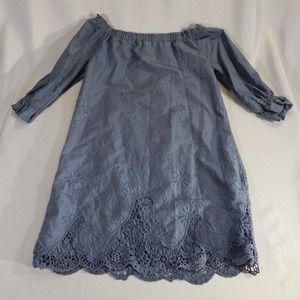 Abercrombie & Fitch Dress Womens XS Off Shoulder Blue Floral Boho Embroidery