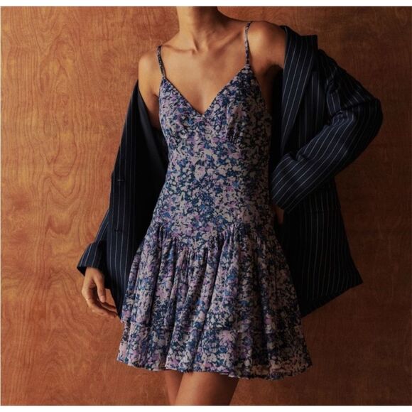 Abercrombie & Fitch Drop Waist Purple Ruffle Skirt Chiffon Mini Dress Size XS